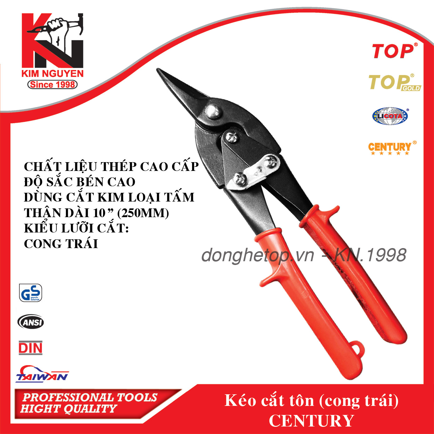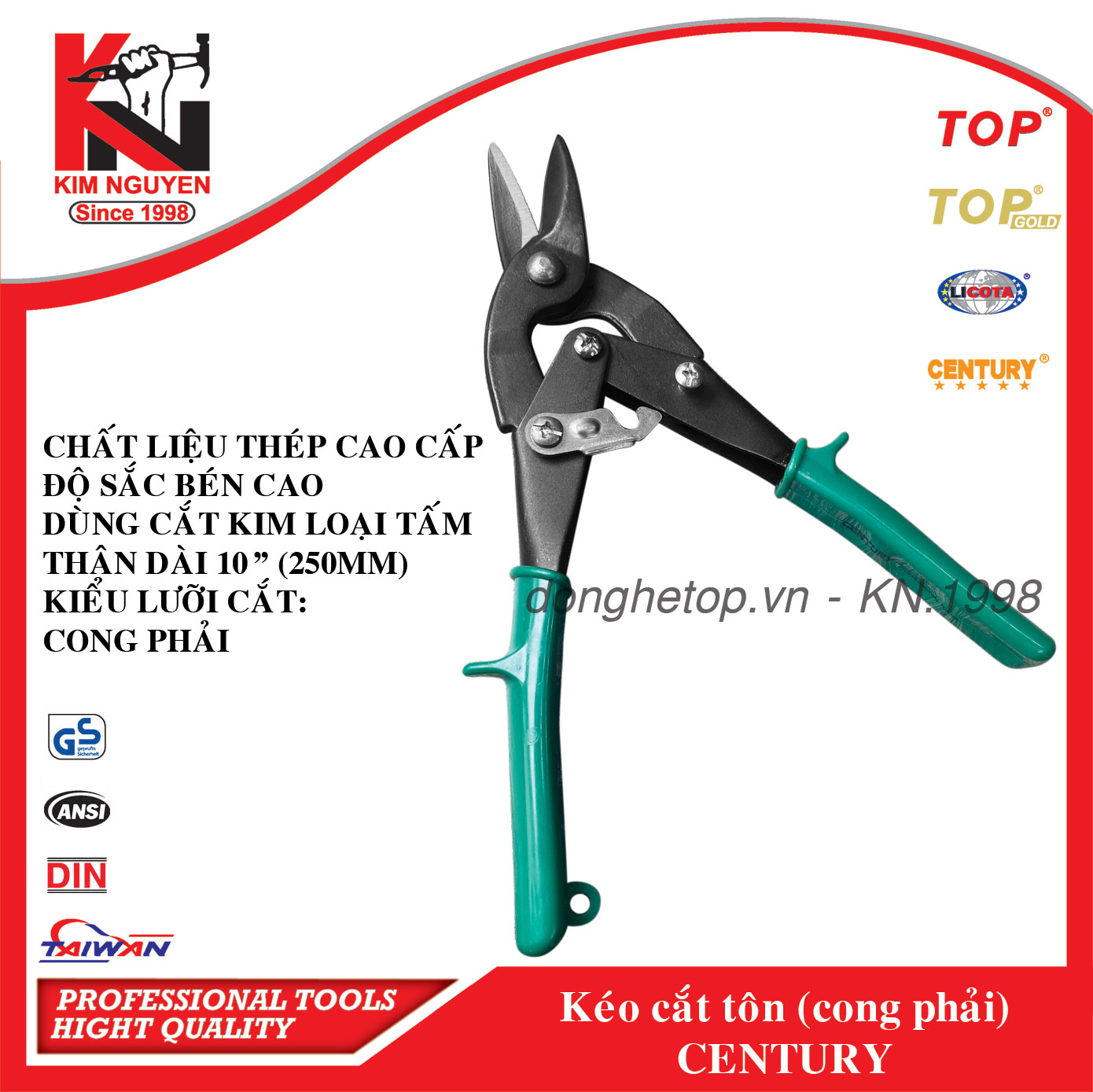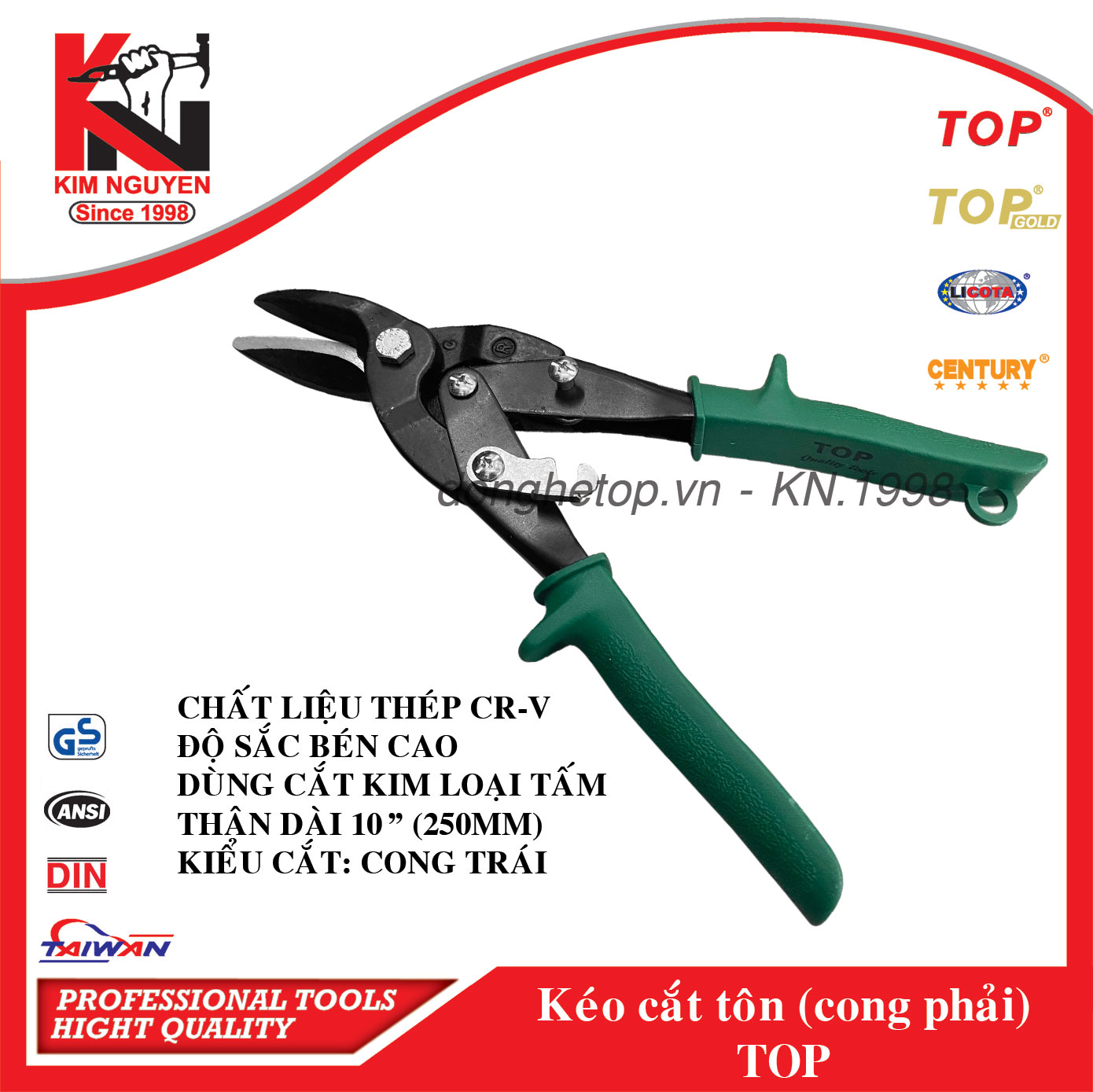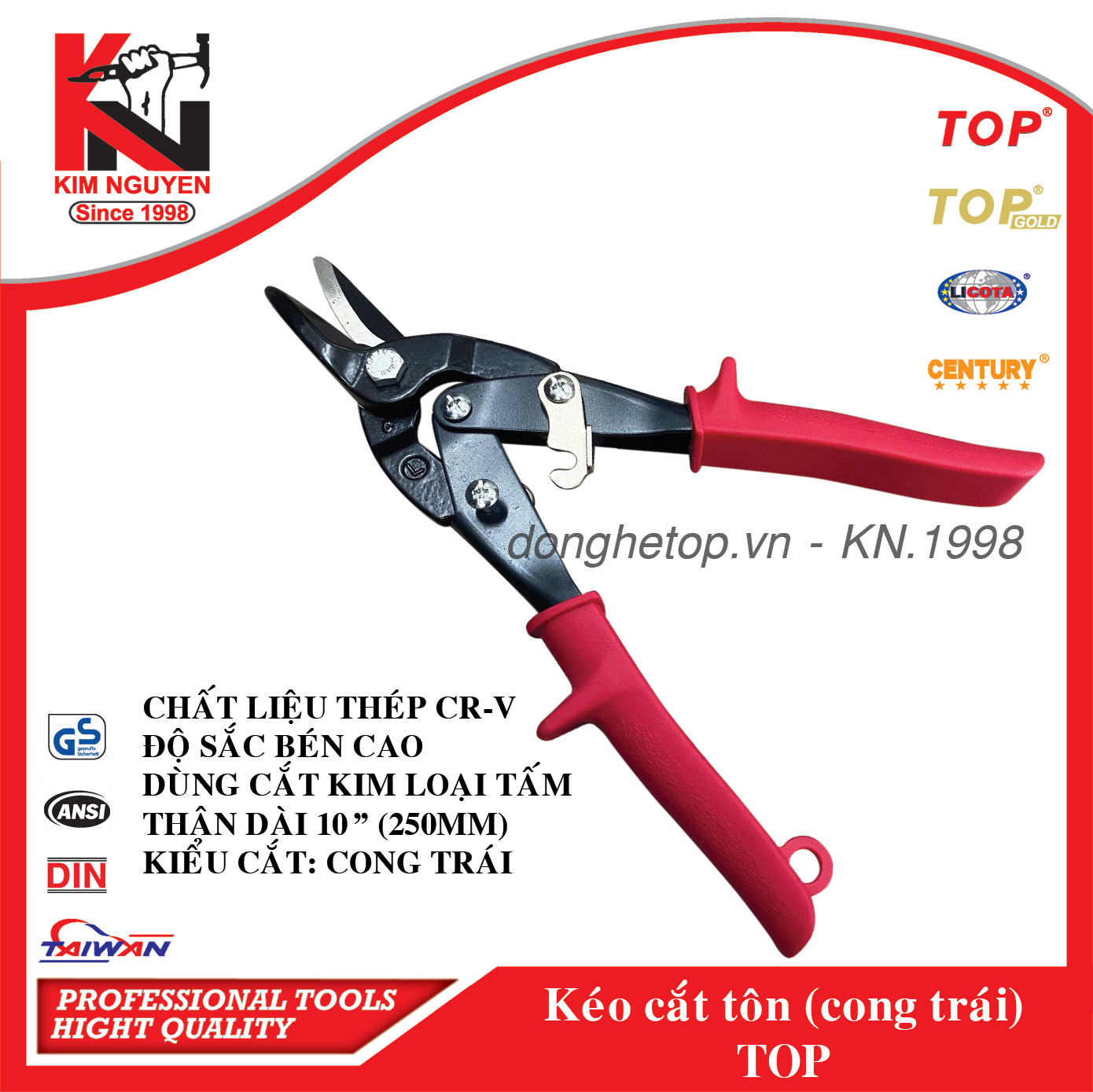 KÉO CẮT TÔN LƯỠI CONG TRÁI (CÁN ĐỎ ) - TOP